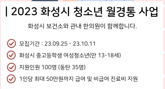 2023 화성시에서 청소년 월경통 한방치료비 지원사업을 진행합니다.